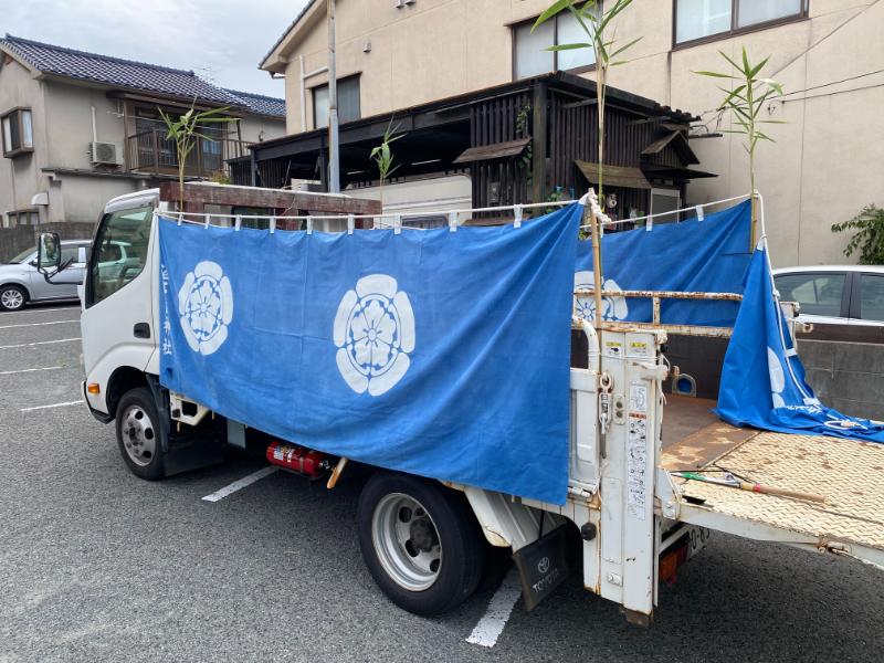 1日目(金曜日)は家飾りの手伝い、午後から家に幔幕(まんまく)・提灯・桜(造花)の飾りつけ。