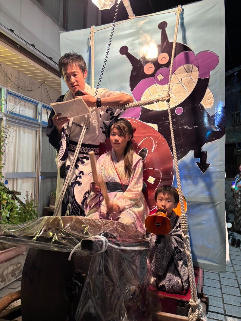 太鼓のリズムに合わせて、歌い・囃子、町内を巡行します。