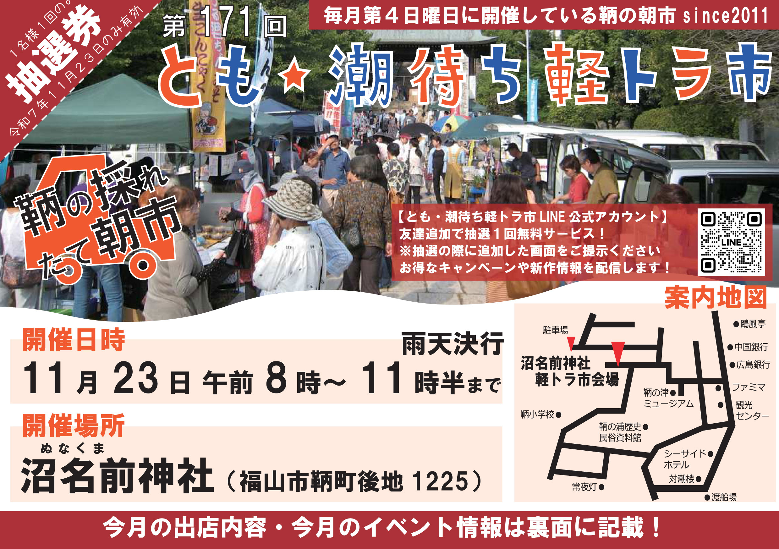 - 【朝市】福山市鞆町の朝市「第171回とも・潮待ち軽トラ市」に行こう!~11月23日(日)の出店者14店を一挙にご紹介 - 2025年11月18日