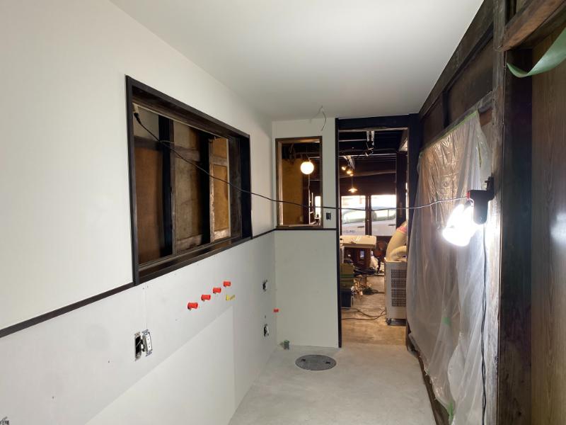 旧中村薬局は次のフェーズ、キッチン部分の改装工事へと移っていきます。