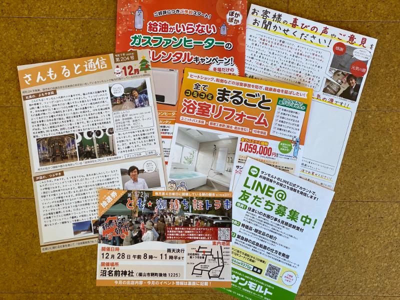 さらに、毎年ご好評いただいている「ファンヒーター無料レンタル」のチラシを封入しております。寒い時期だけ無料レンタル。暖かくなる春先に引き取り、来シーズンに向けてメンテナンスと保管を行います。