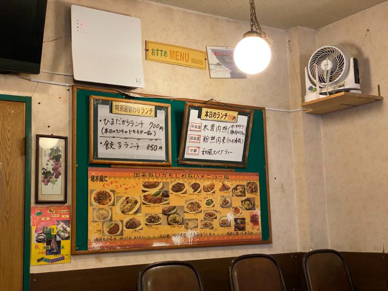 ランチメニューは「特別週替わりランチ」「餃子ランチ」「本日のランチ」の3種があります。その他、単品メニューも豊富。