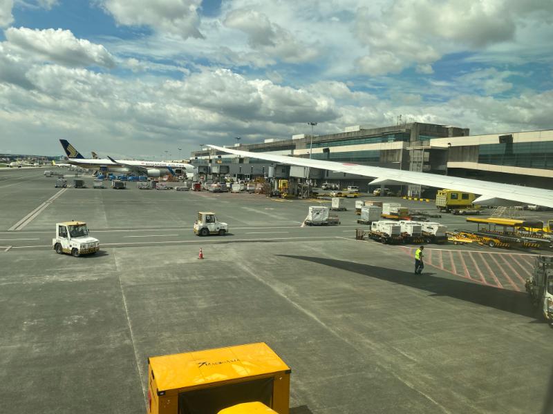 マニラ到着は現地時間13時30分。日本とマニラ(フィリピン)の時差は1時間。日本で13時なら、マニラは12時。