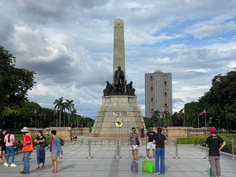 フィリピンの国民的英雄「ホセ・リサール記念像」があり、記念碑の下にリサールが埋葬されています。ホセ・リサール(1861-1896)は、医師・作家・思想家としてスペイン植民地支配下でフィリピンの自治と独立を訴え、フィリピン・ナショナリズムの父と称される人物です。