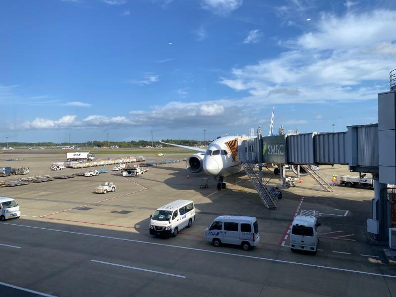 成田空港に到着。ここからバスで羽田空港へと向かいます。