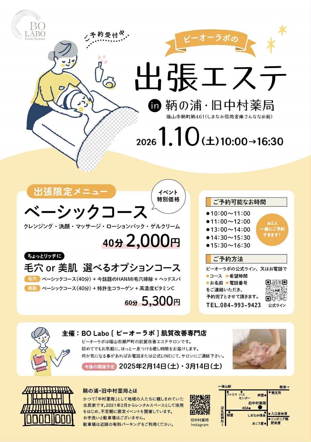 - 【エステ】出張エステ in 鞆の浦・旧中村薬局(1/10sat.10時~16時30分) - 2026年1月10日