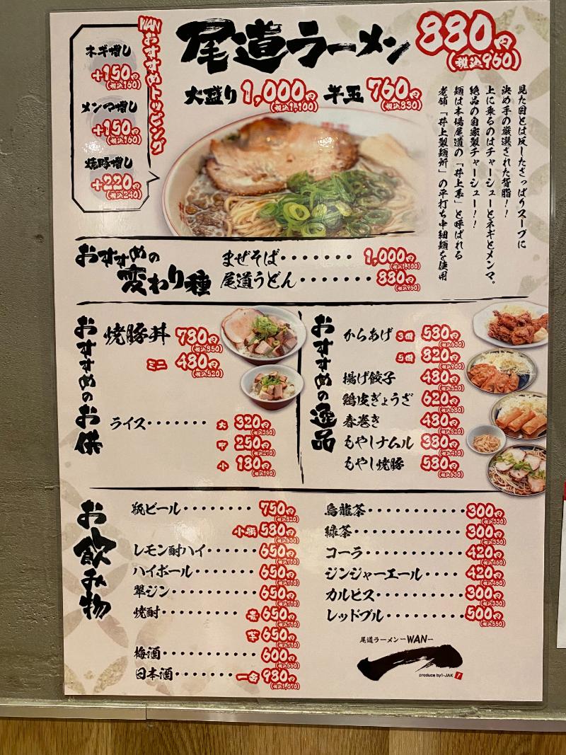 広島市中区にあるラーメン屋「尾道ラーメン一 WAN」です。一(はじめ)と書いて、WAN(わん)です。
