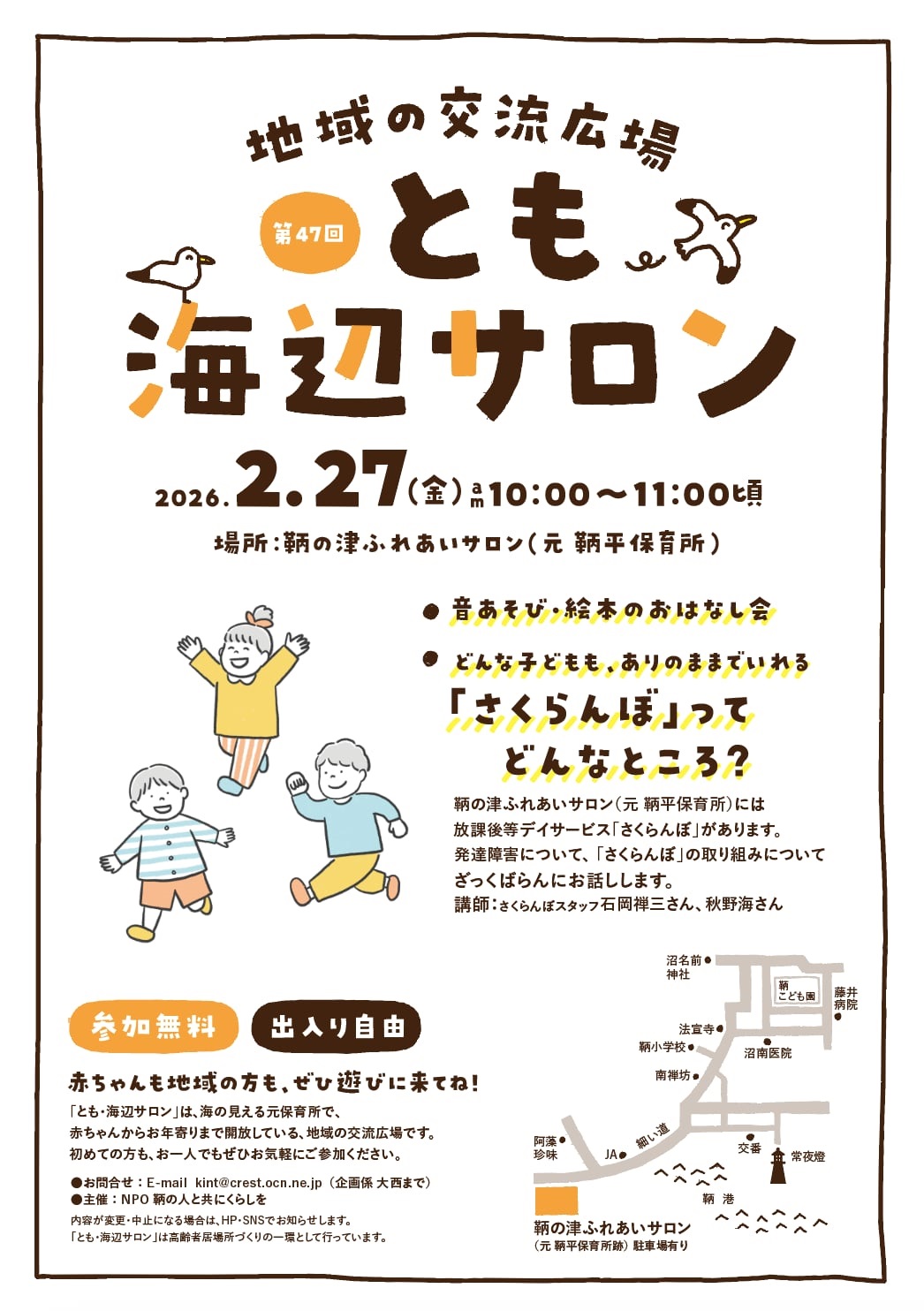 - 【子育て支援】第47回とも海辺の親子サロン開催!~2月27日(金)10時から11時頃 in 旧鞆平保育所 - 2026年2月26日