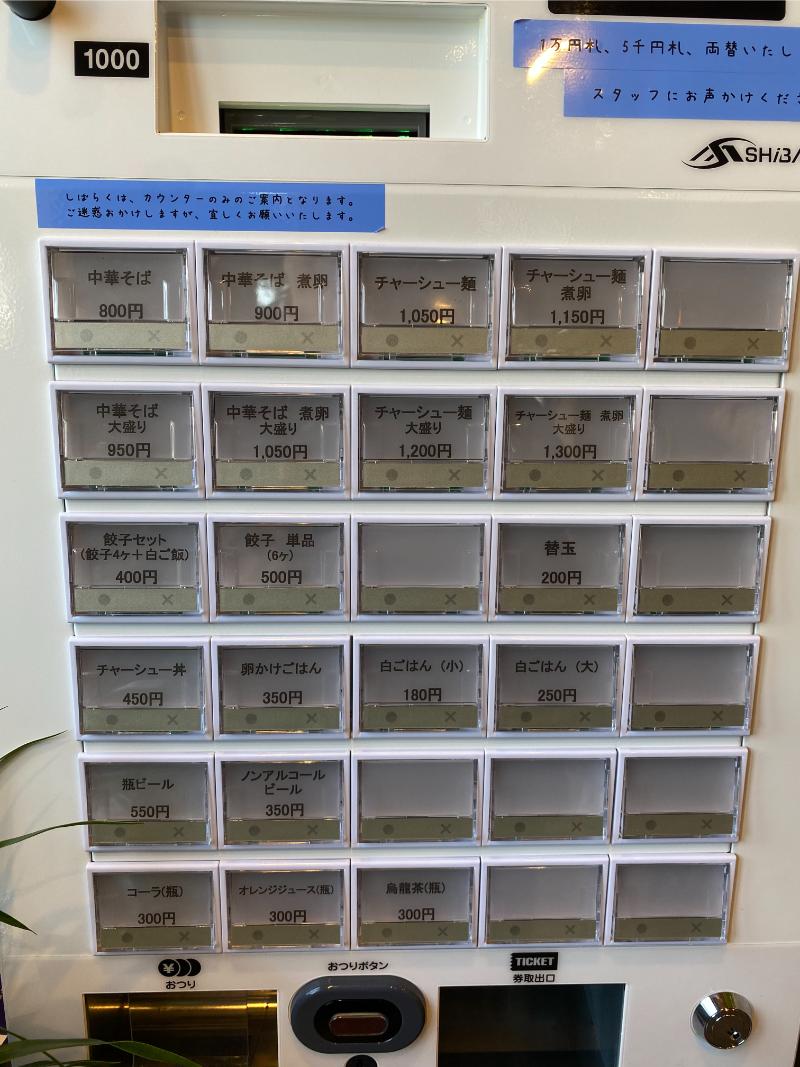 入店してすぐ左側で食券を買うシステム(現金のみ)。ラーメンは中華そばがメイン。その他、大盛や中華そばでは珍しい替玉も。その他、餃子セットやチャーシュー丼、卵かけごはんがあります。