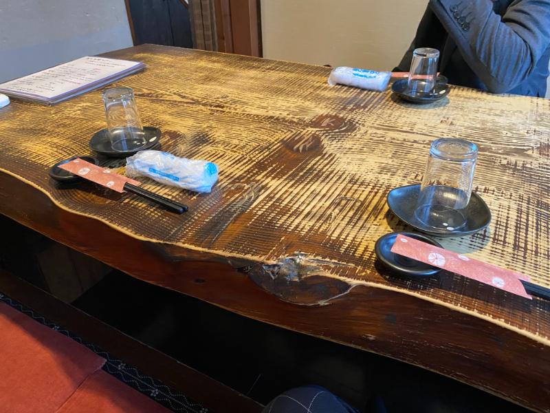 店内は1階はカウンタ―席、2階は掘りごたつ席の半個室、3階は完全貸切のようです。写真は2階の半個室。