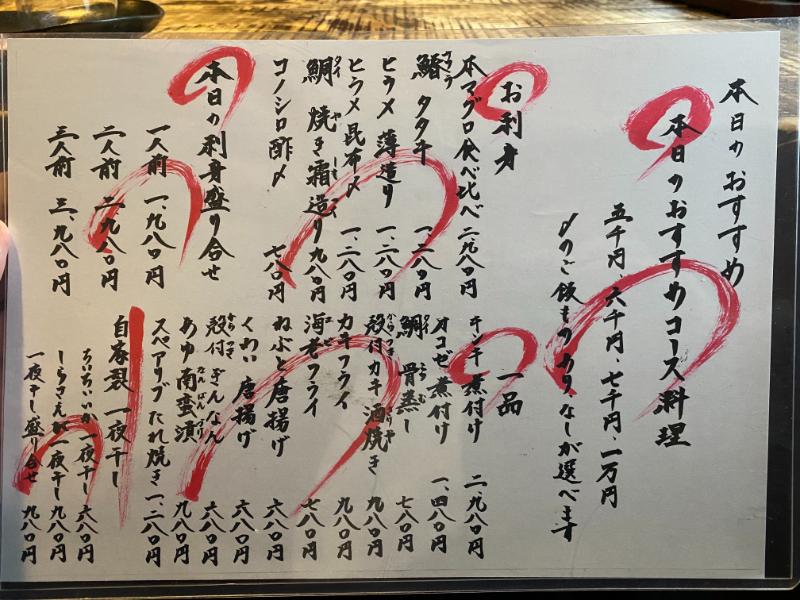 本日の店主おすすめコース料理